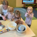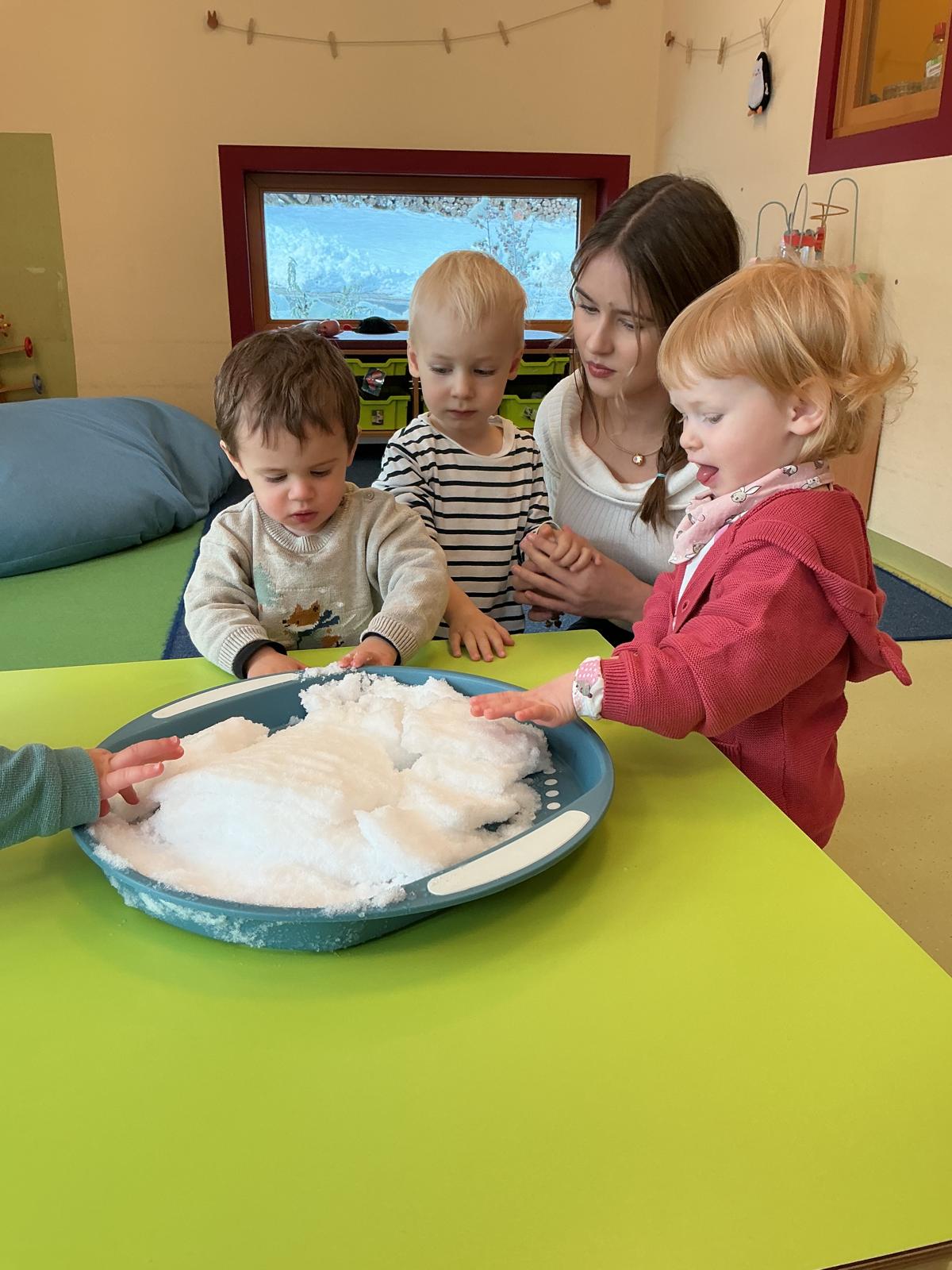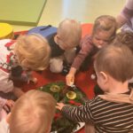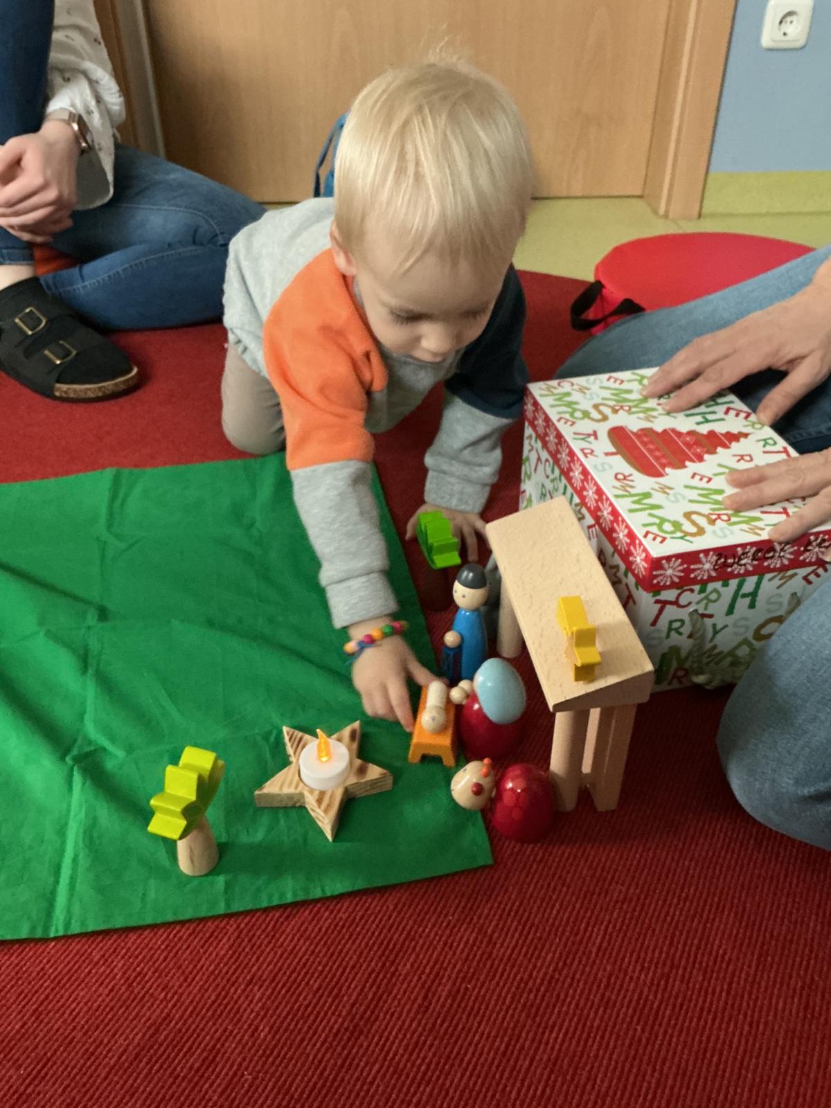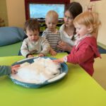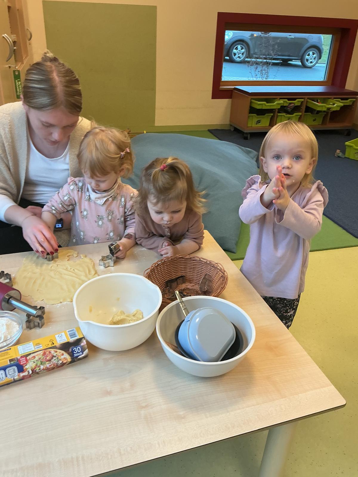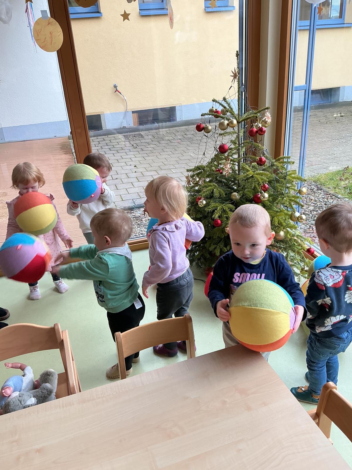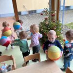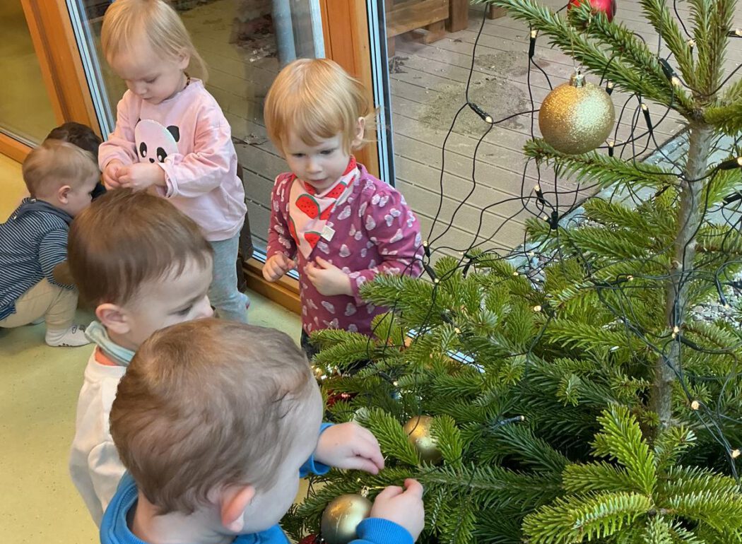 In der Adventszeit ging es im Zwergenstübchen besonders festlich zu. Gemeinsam mit den Kindern haben wir mit Schnee experimentiert und dabei neugierig geforscht und gestaunt. Natürlich durfte auch das Plätzchenbacken nicht fehlen – mit viel Freude, Mehl an den Fingern und leckerem Duft im Raum. Zusammen haben wir den Adventskranz geschmückt und später dann den Weihnachtsbaum liebevoll dekoriert, sodass überall Weihnachtsstimmung spürbar war. Ein ganz besonderes Erlebnis war, als die Kinder Yvonne als Nikolaus verkleidet haben. Die Aufregung war groß als anschließend jeder einen gefüllten Nikolaussocken bekommen hat. Außerdem haben wir gemeinsam die Weihnachtsgeschichte erzählt und zur großen Freude der Kinder kam sogar das Christkind vorbei und brachte bunte Bälle mit.